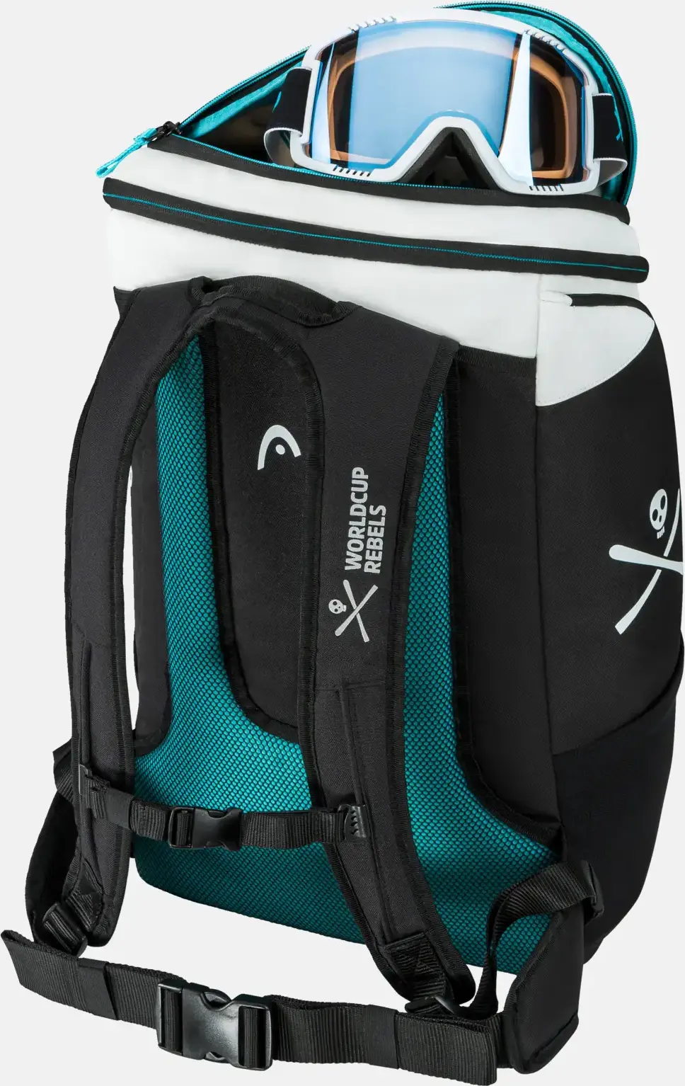 Der Rebels Backpack schützt die Ausrüstung während der Fahrt im Van und auf Skireisen. Das Rückenteil passt sich an den Körper an und sorgt gemeinsam mit den komfortablen Schultergurten und einem Hüftgurt für einen ergonomischen Fit. In den externen Schuhfächern können deine Schuhe sicher verstaut werden, während das Brillenfach wertvolle Accessoires schützt. Der Rebels Backpack hat robuste Reißverschlüsse und ein langlebiges Außenmaterial, damit er sowohl den Elementen, als auch den langen Saison standhalten kann.