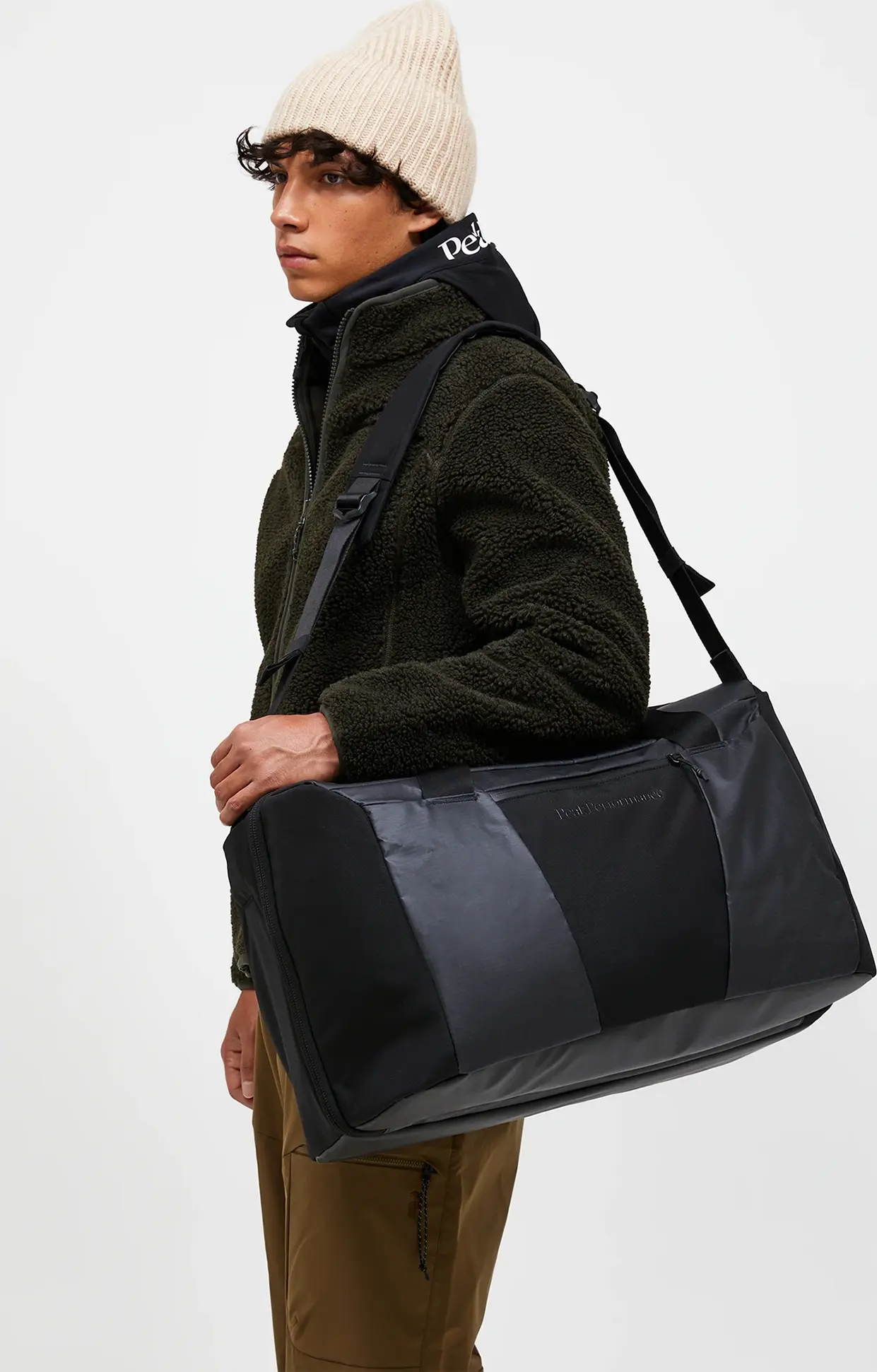 Vielseitiger geht es kaum: Im Seitenfach dieser wattierten Dufflebag verstecken sich zwei Schulterriemen, mit denen du die Tasche im Handumdrehen in einen Rucksack verwandelst. Das große Hauptfach wird wie ein Koffer mit zwei Reißverschlüssen geschlossen und ist mit einer Mesh-Trennwand unterteilt. In der Seitentasche findet ein 16‑Zoll-Laptop Platz.