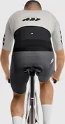 Der offene 3D-Rundstrick miniCheck Tex bietet hohe Atmungsaktivität, hohe Elastizität, UPF 25 und die charakteristische ASSOS-Trikot-Textur auf der Front. Die Taschen werden durch ein Rückenteil aus Stabilizer V11 verankert, das hypercooling Atmungsaktivität liefert und so leicht ist (UPF 15), dass wir empfehlen, darunter Sonnencreme aufzutragen. Zudem erhöht es die Stabilität und verhindert Durchhang und Bewegung bei beladenen Taschen. Die Ärmel bestehen aus dem neuen 550CX Warp-Knit-Textil, das UPF 35 Schutz bietet sowie eine muskelumhüllende Bistretch-Passform mit inhärenten aerodynamischen Eigenschaften.