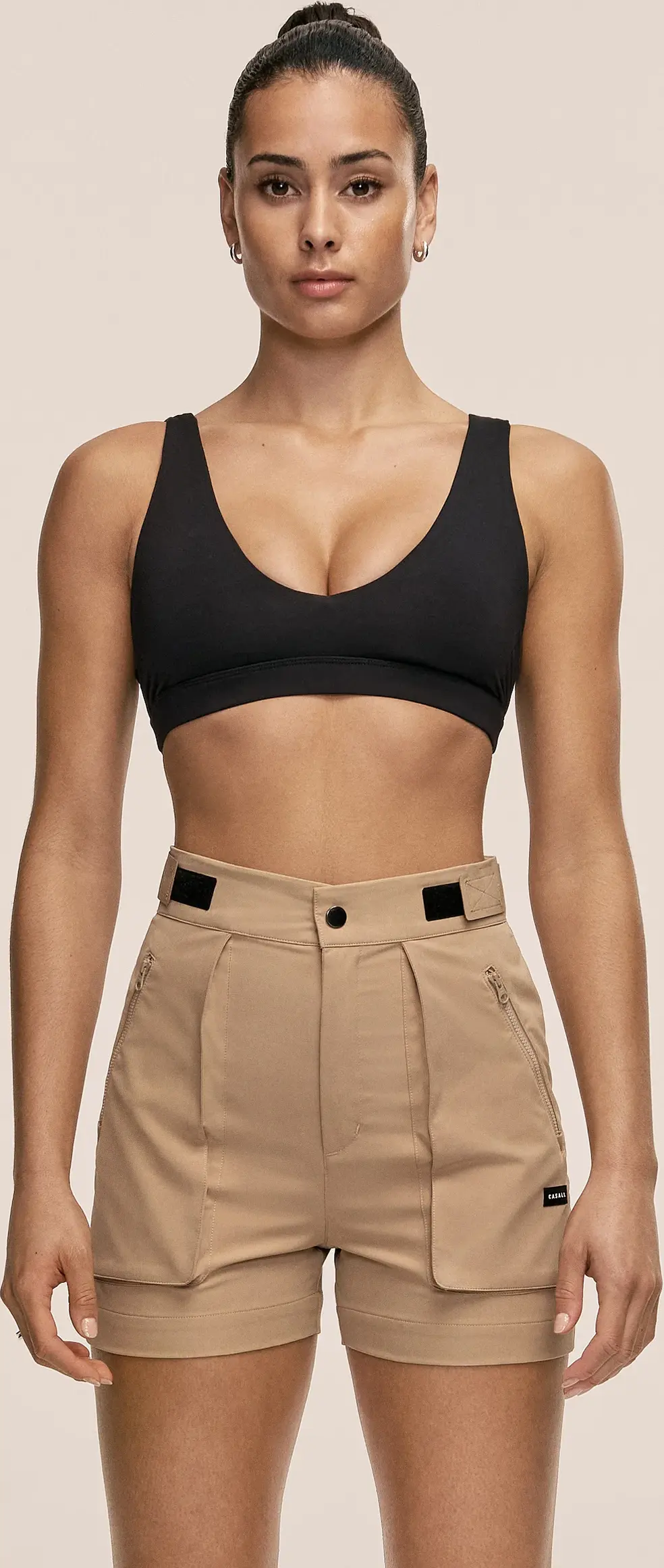 Sportliche Outdoor-Shorts für einen aktiven Lebensstil. Diese Shorts mit hoher Taille haben zwei große Reißverschlusstaschen für einen modernen Look und ein Meshfutter für zusätzliche Atmungsaktivität. Klettverschluss in der Taille für die perfekte Passform. Hergestellt aus recycelten Materialien.