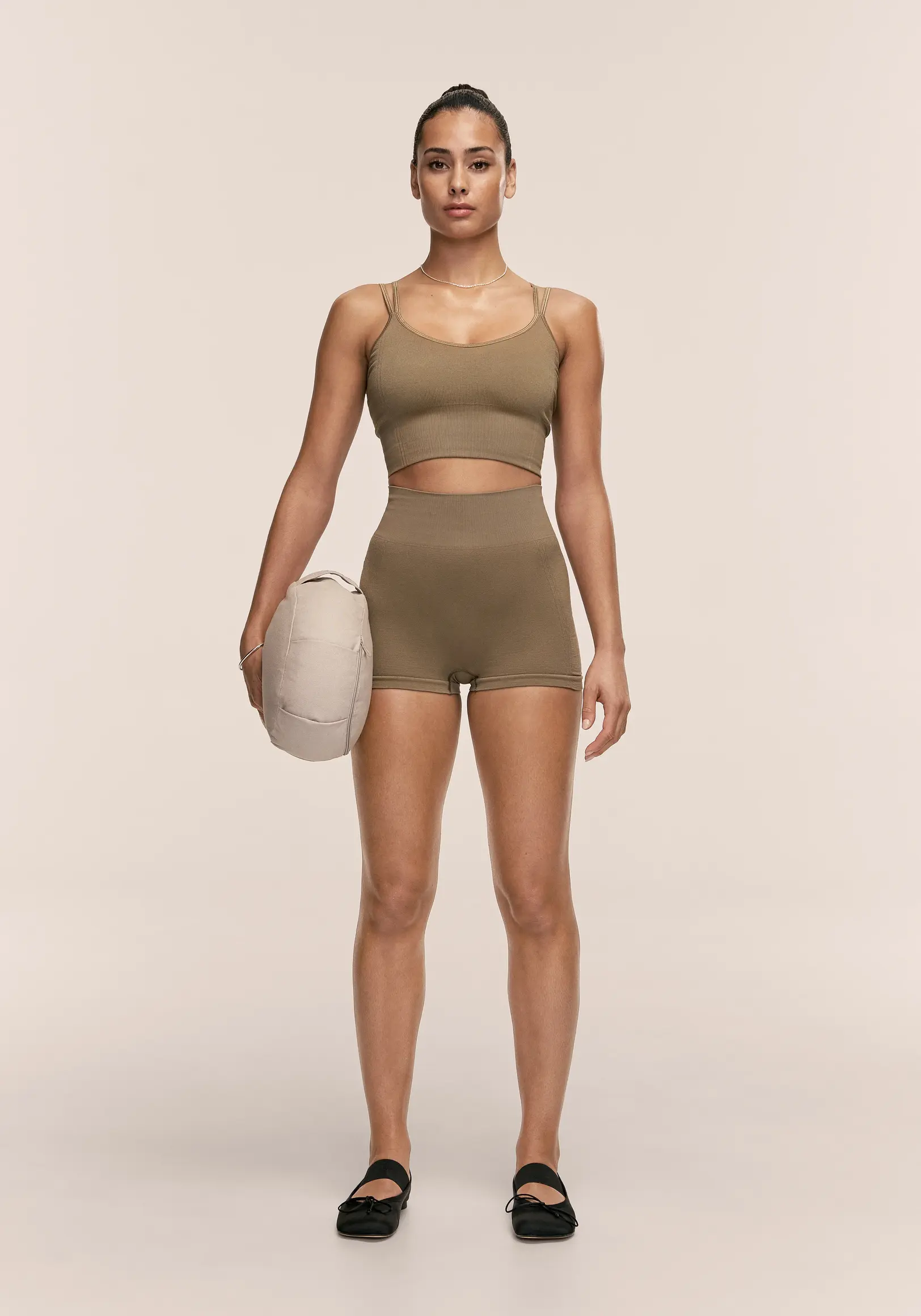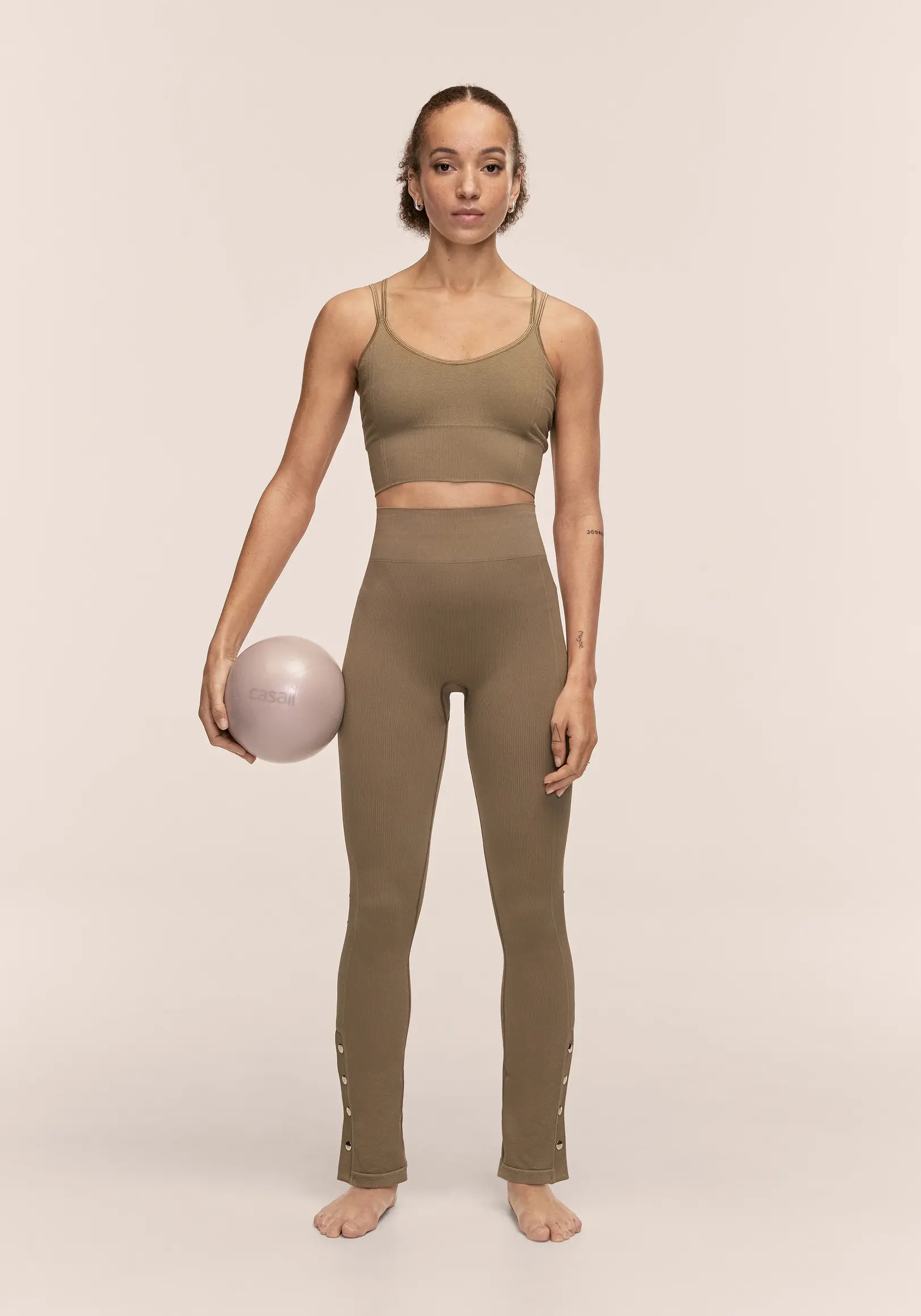 Dehnbares Trainingstop mit gerippten Details. Gefertigt aus nahtlos gestricktem Material mit leichtem Glanz. Entwickelt für Yoga, Pilates und ähnliches Fitnesstraining. Schmale Passform.