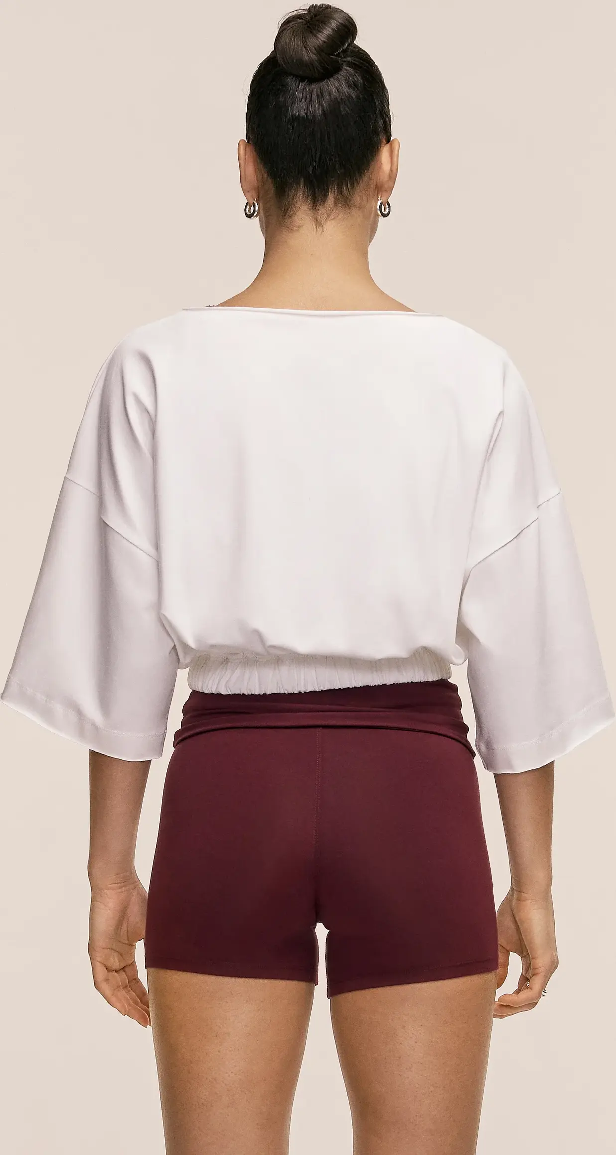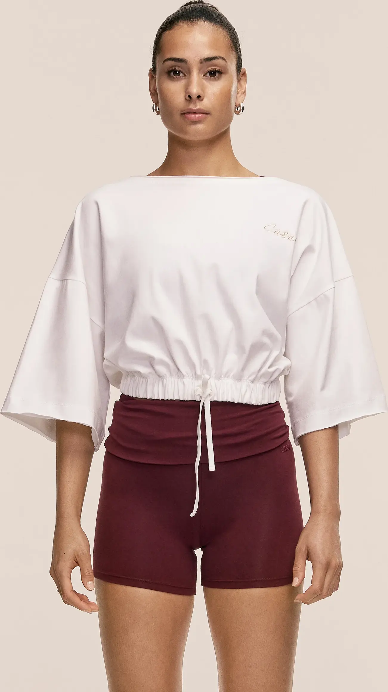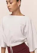 Cropped T-Shirt mit lockerer Passform. Gefertigt aus einem weichen Mix aus Bio-Baumwolle und Elastan. Entwickelt für niedrig-intensives Training und einen aktiven Alltag. Gerüschter Saum mit Kordelzug.
