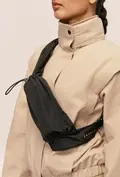 Crossbody-Tasche für deine Wasserflasche. Hergestellt aus einem gewebten Material mit leicht glänzender Oberfläche. Entwickelt für einen aktiven Alltag und ideal für den Weg ins oder aus dem Gym. Mit verstellbarem Kordelzug und Schulterriemen. Reißverschlussfach auf der Rückseite.