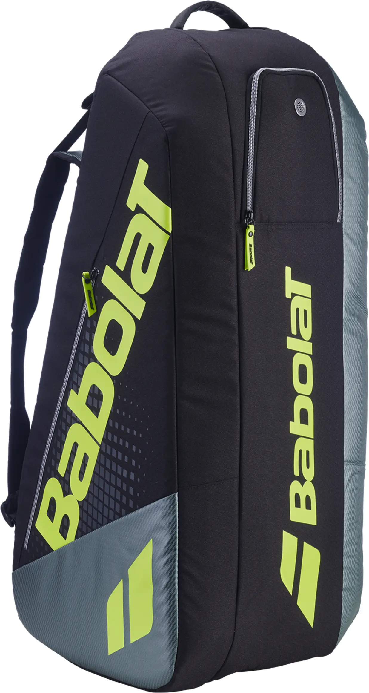 Mit dem neuen RH6 Pure Aero Racketholder machen Sie auf dem Platz Furore.Der RH6 ist modern und sportlich geschnitten. Sein auffälliges Design steht in perfekter Harmonie mit dem Kernkonzept der Aero-Serie von Babolat.Mit ihrem ergonomischen Design und der Möglichkeit, aufrecht zu stehen, sowie den hochwertigen Materialien ist der RH6 Pure Aero Racketholder ein zuverlässiger Partner für alle Ihre Lieblingsaktivitäten.Die Materialien sind leistungsstark und für eine lange Lebensdauer ausgelegt:Der RH6 Pure Aero besteht aus recyceltem Polyester, ist wasserabweisend und sehr langlebig. Er bietet Ihrem Equipment den bestmöglichen Schutz. Das Außenmaterial spiegelt die Aerodynamik eines Schlägers wider, der durch die Luft schneidet. Das Innenfutter aus recyceltem Polyester steht für mehr Umweltbewusstsein.Der Stauraum, den Sie brauchen:• Zwei Hauptfächer für bis zu sechs Schläger oder das wichtigste Tennis-Equipment.• Zwei praktische Seitenfächer für Zubehör und persönliche Dinge.Der RH6 Pure Aero ist von den besten Spielern des Babolat-Teams inspiriert. Er bietet Style, Organisation und Haltbarkeit, damit Sie jeder Herausforderung gewachsen sind.