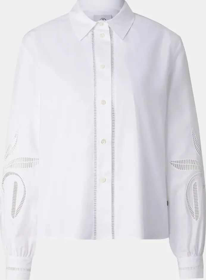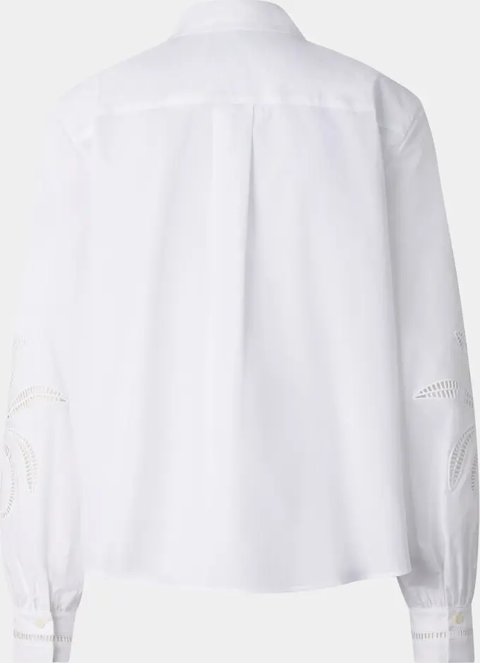 Im raffinierten Design mit Lochstickereien begeistert die Hemdbluse Summer, modern ergänzt durch den boxy Shape und Ballonärmel. Klassische Details wie der Hemdblusenkragen und die durchgehende Perlmuttknopfleiste heben den Style hervor, während das Faltendetail einen femininen Twist schenkt. Der rückseitig leicht verlängerte Saum rundet das Piece stilvoll ab.