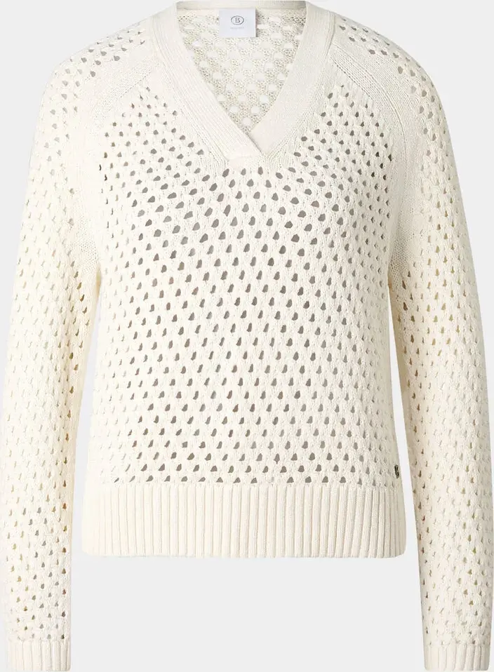 In strukturierter Qualität aus Baumwolle und Seide überzeugt der Pullover als stilvolles Update des Outfits, ergänzt durch den klassischen V-Ausschnitt. Komfort bieten der lockere Fit, Raglanärmel sowie gerippte Bündchen. Das feine Logo-Signé verleiht einen labeltypischen Akzent.