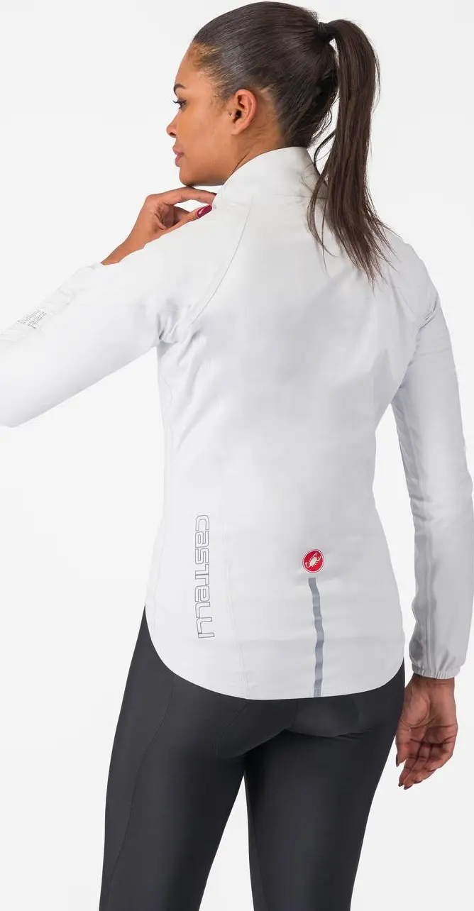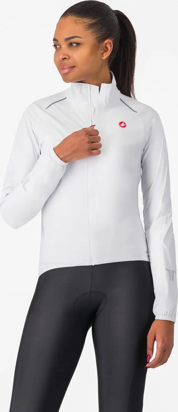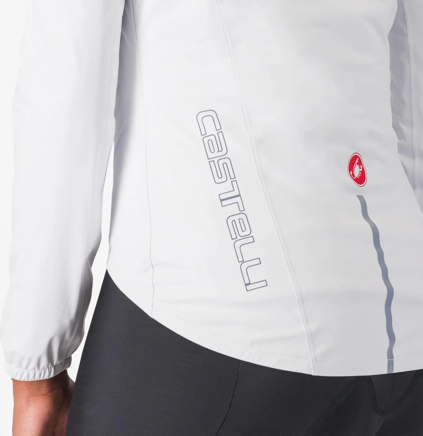 Vollständig wasserdichte 3-Schicht-Shelljacke, gut packbar mit Performance-Stretch-Passform Das neue 3-Schicht-Deluge-Material von Castelli mit 20.000 mm Wassersäule ist dünn und leicht für eine gute Verstaubarkeit Die gestrickte Polyester-Schicht im Inneren fühlt sich angenehm auf der Haut an Die Passform ist körpernah aber nicht eng und die Dehnbarkeit des Stoffes sorgt dafür, dass nichts abgeschnürt wird Sie ist sehr gut packbar und passt in eine Trikot-Tasche oder eine Bikepacking-Tasche Schutz vor Nässe den ganzen Tag lang durch Nähte mit Tape-Versiegelung Rundum-Reflektoren Wasserdichter Reißverschluss