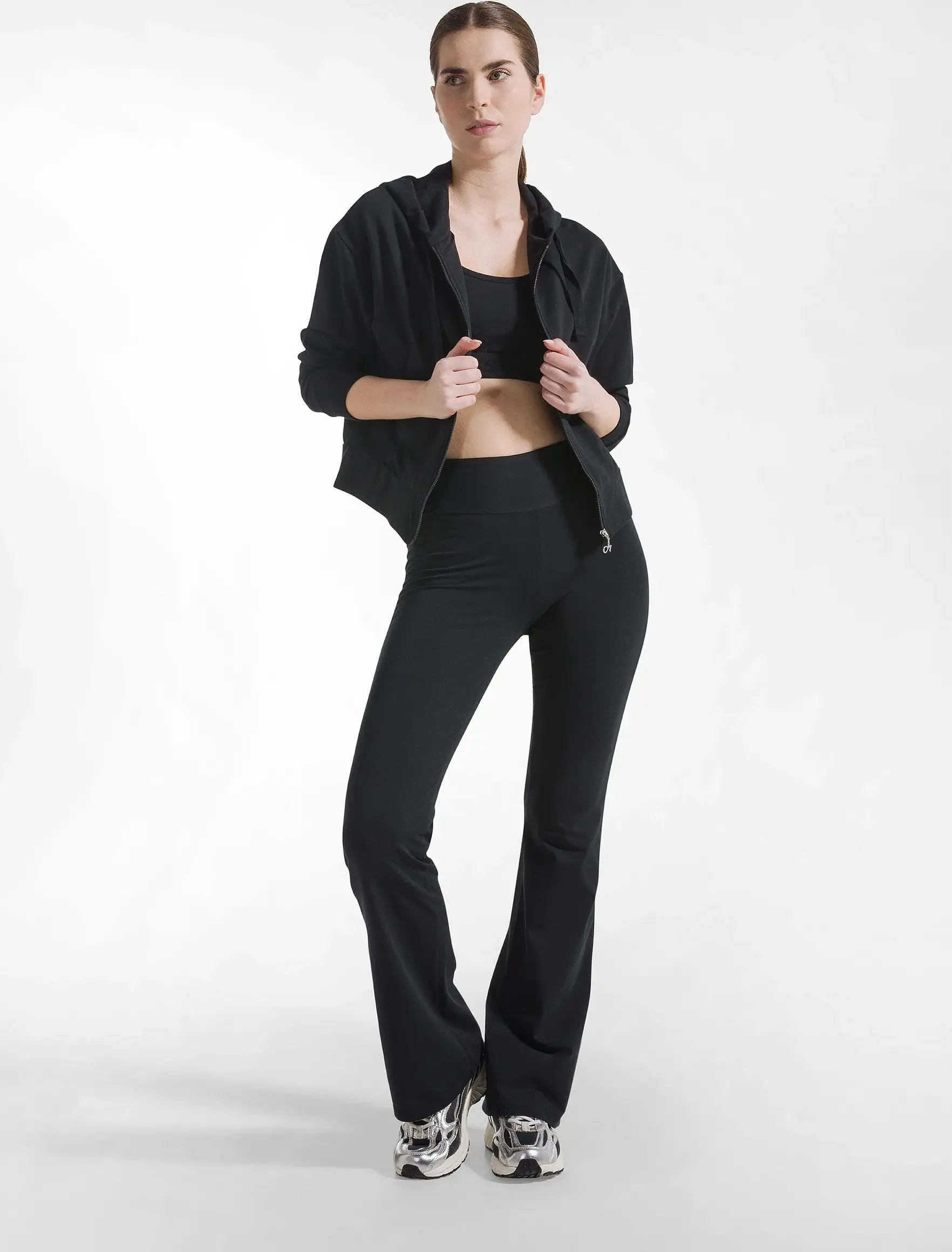 Jazzhose aus Stretch-Jersey, mit ausgestelltem Bein und bequemer Passform.