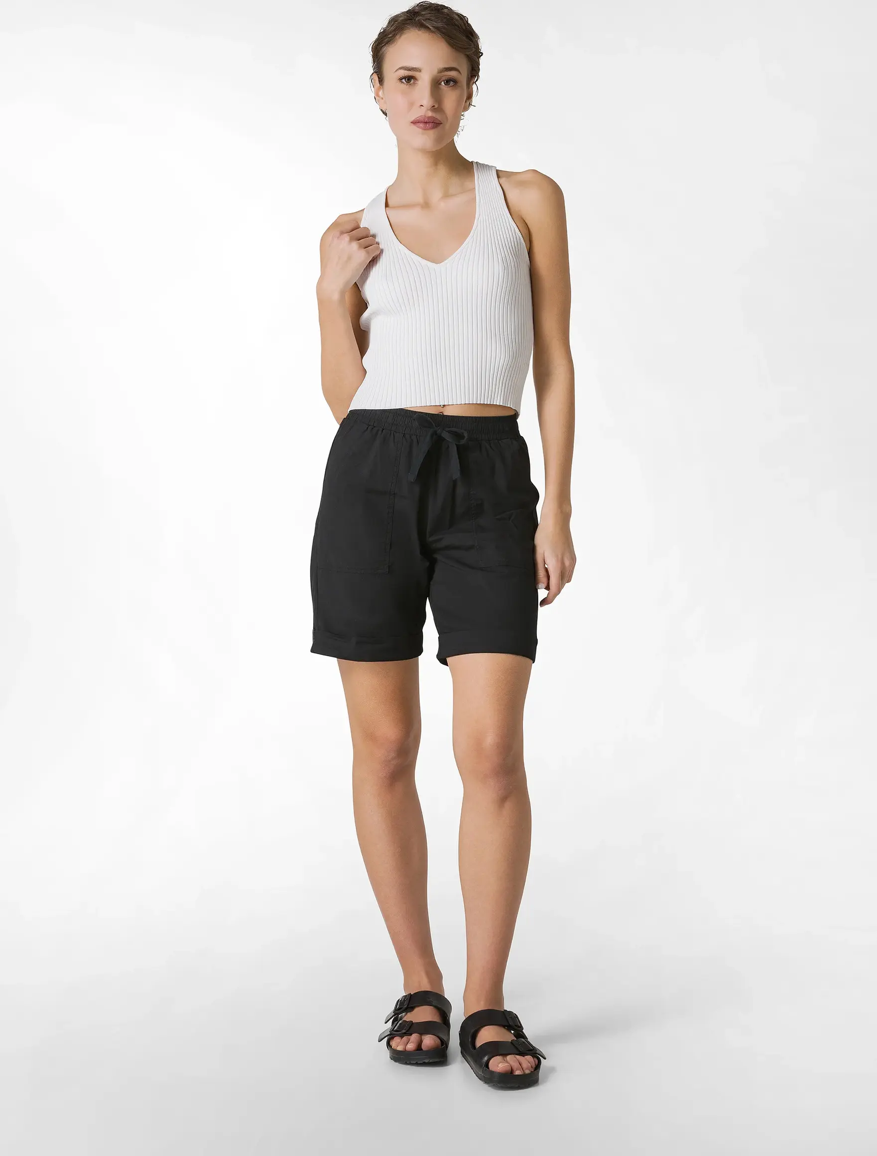 Die Bermudashorts sind mit einem Kordelzug in der Taille ausgestattet, mit dem Sie die Passform und Form anpassen können, um einen individuelleren Look zu kreieren.