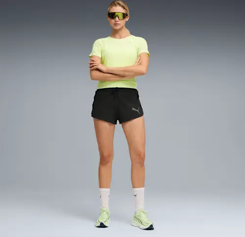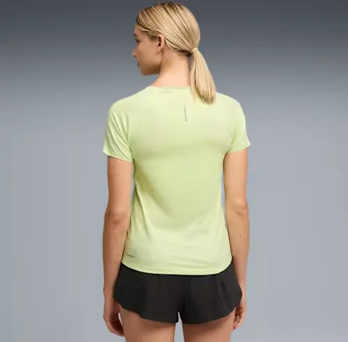 Mit dem weichstem CLOUDSPUN Material von PUMA mit feuchtigkeitsableitendem dryCELL und 4-Wege-Stretch für optimale Bewegungsfreiheit. Lasergeschnittene Perforationen verbessern die Atmungsaktivität, während gebondete Nähte die Reibung reduzieren. Die Thermoadapt Technologie hält dich kühl, wenn du über deine Grenzen gehst.