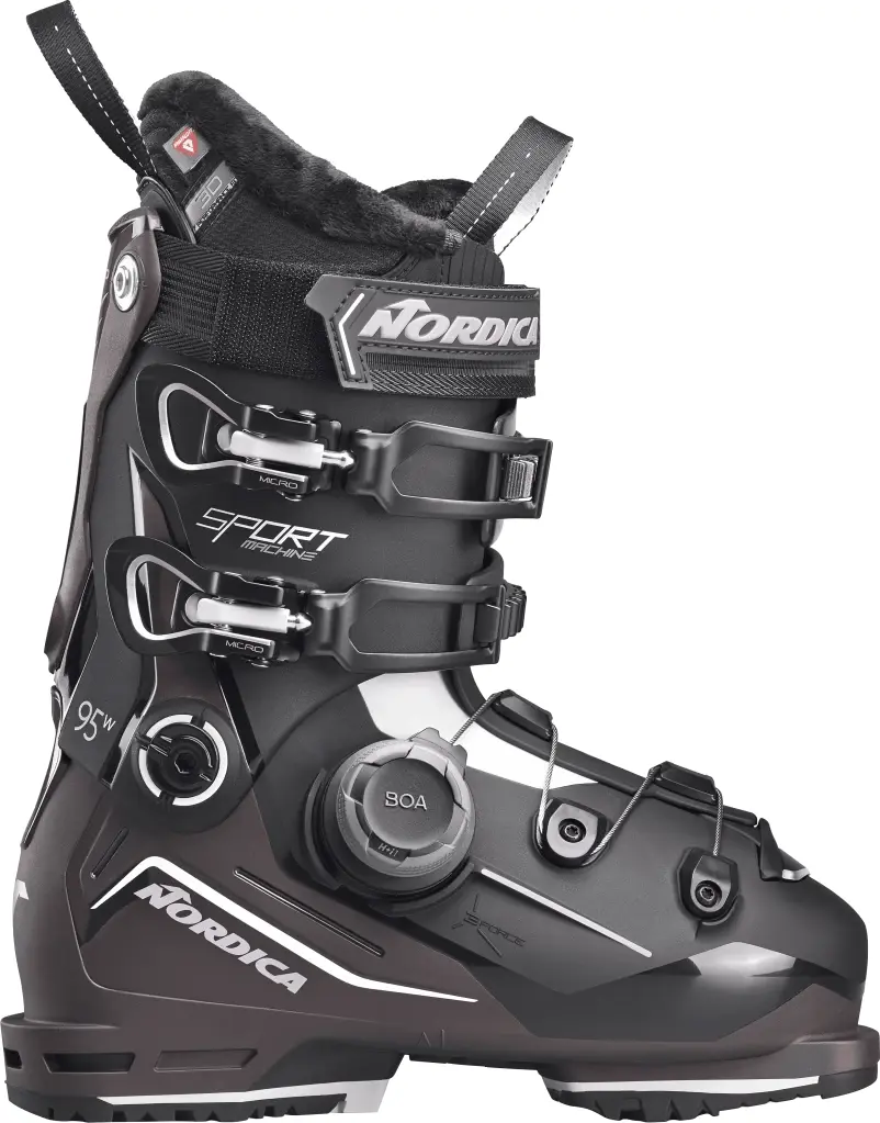 Die Sportmachine 3 BOA® 95 W legt den Fokus auf Komfort, ohne auf Performance zu verzichten. Sie verfügt über unsere neu entwickelte Tri Force Technologie mit dem BOA® Fit System. Mit der einfachen Mikroanpassungen erzielst du eine komfortable Passform uns stehst mit einem sicheren Gefühl auf dem Ski. Für eine individuelle, persönliche Passform, können Schale und Innenschuh vollständig an deinen Fuß angepasst werden. Und damit deine Füße warm und trocken bleiben, verfügt dieser Schuh über einen 3D Performance Fit Innenschuh mit PrimaLoft Isolierung. Mit der Sportmachine 3 BOA® 95 W stehst du besser als je zu vor auf dem Ski.