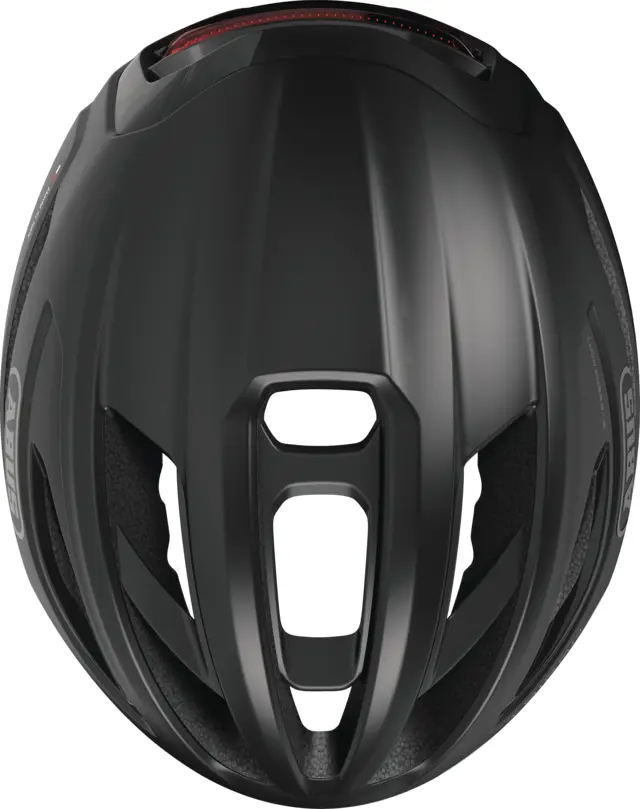 Brillenhalterung vorne: definierte Aussparung an der Helmfront, um Brillen während der Fahrt in eine sichere und aerodynamische Halteposition zu bringen