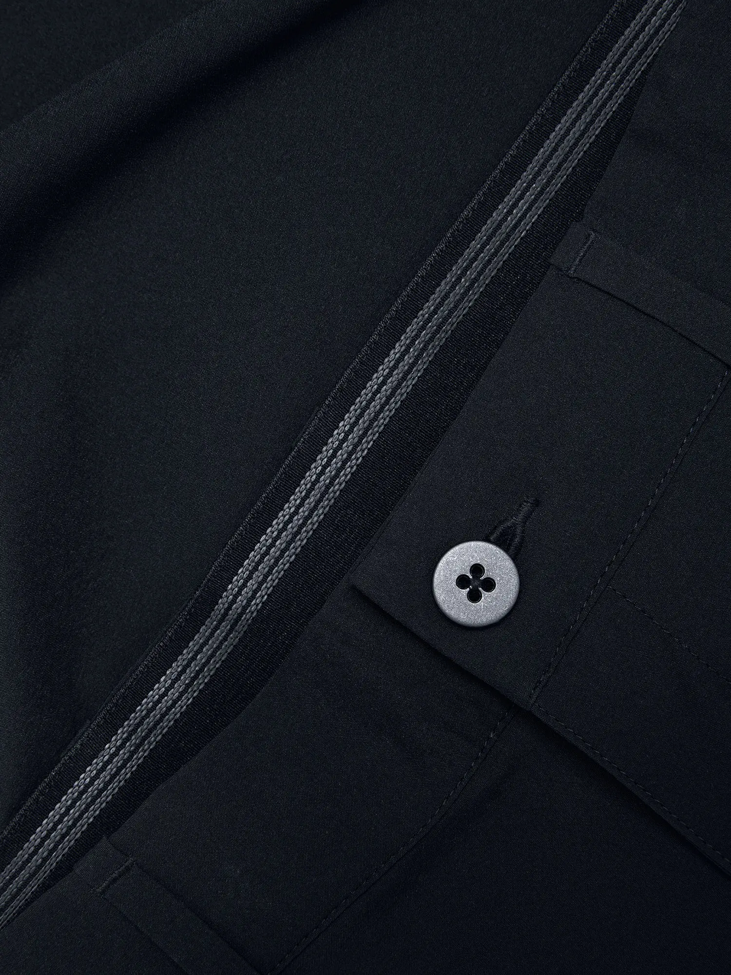 leichtes, 50 Denier starkes 4‑Wege-Stretchmaterial (124 g/m²) mit Leinwandbindung; hält leichten Regen ab