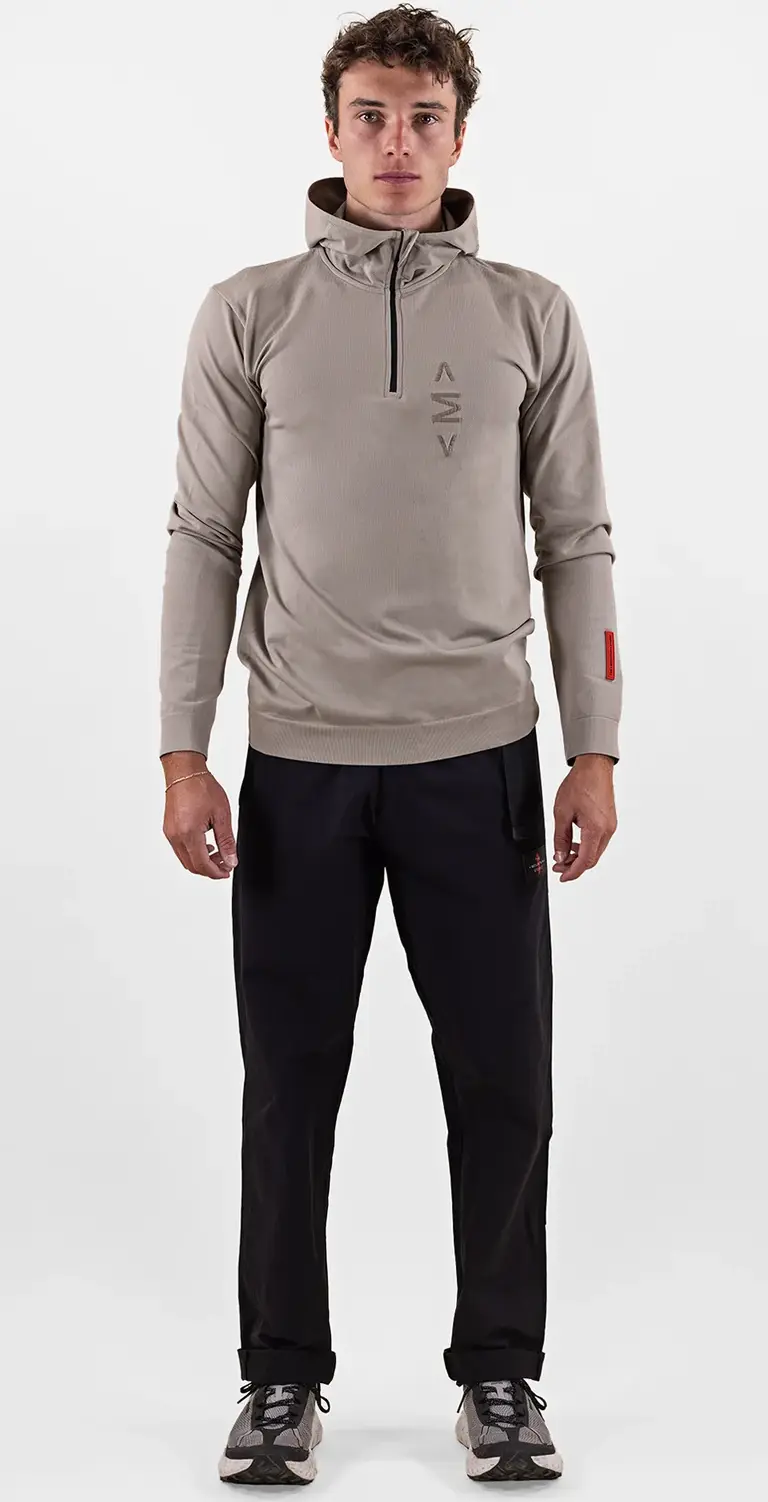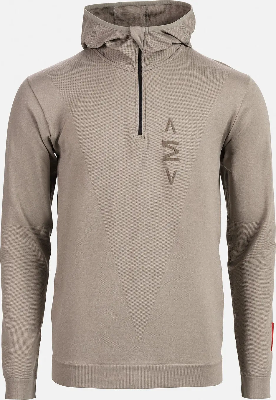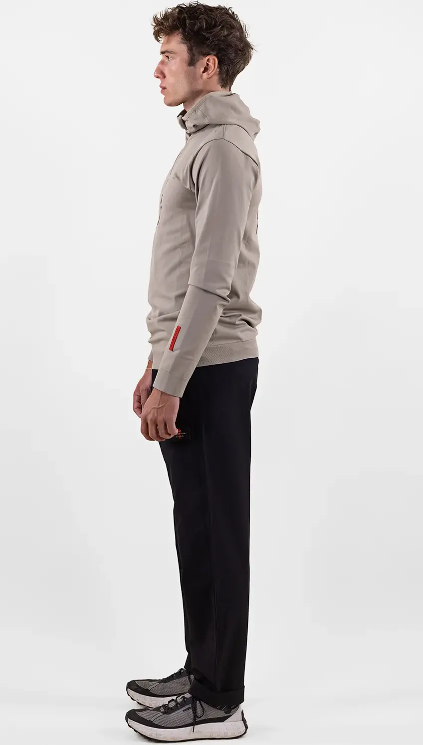 The M-10 Tecno Hood is designed for active days in the mountains or relaxed moments in town. This men's lightweight outdoor hoodie offers reliable comfort for hiking, biking, or daily routines. The half-zip construction allows for quick ventilation control during changing activity levels. Its understated design and subtle logo details make it a versatile jacket for city and mountain use.