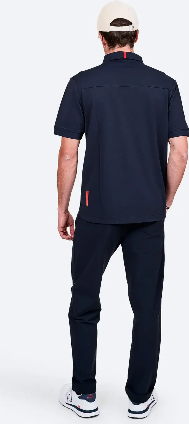 The Q-9 Button Down Polo Shirt is designed for men who need a comfortable shirt for an active lifestyle that transitions easily from the golf course to daily routines. Its short sleeve, modern fit delivers a clean and timeless look, while the structured piqué fabric provides a technical feel that supports movement and comfort during long days outside. Rubber buttons keep the front minimal, and the shirt is available in blue and white for versatile styling options.