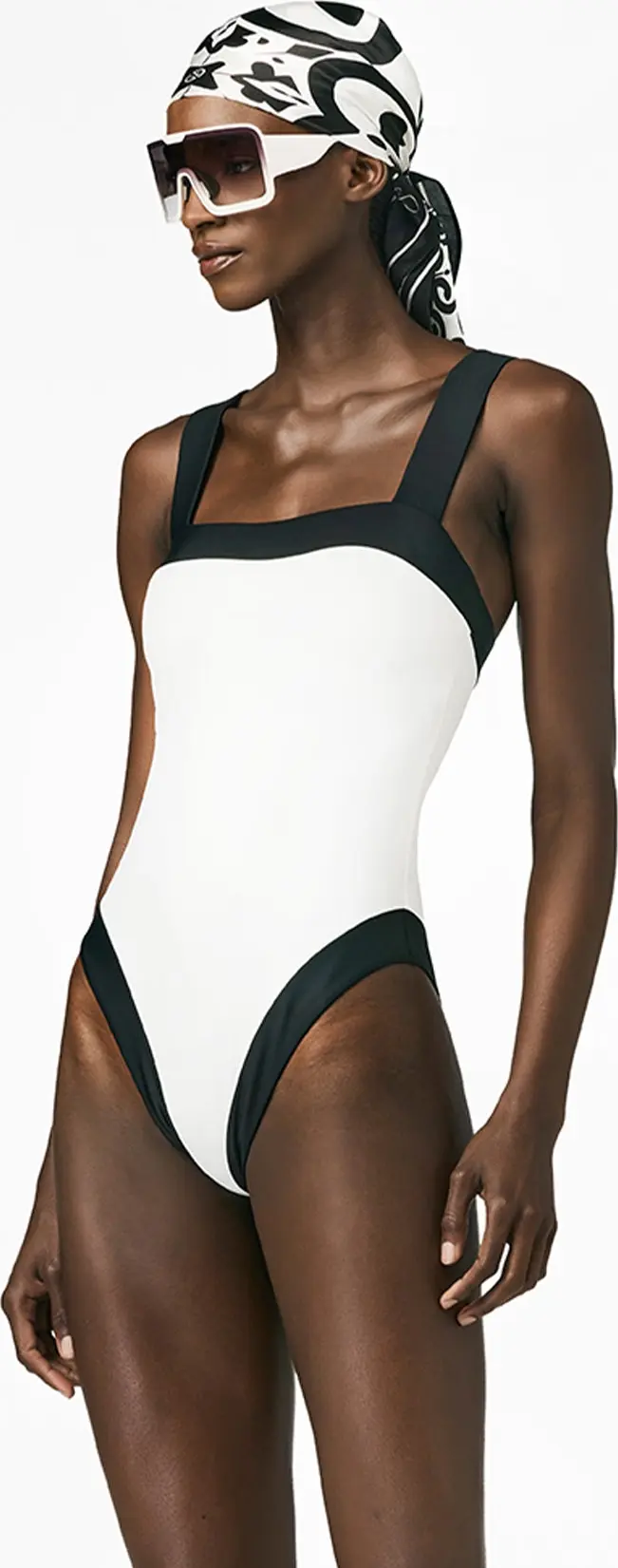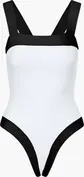 MATERIALFarben: Jersey, Powerstretch, schnell trocknend, UV-Schutz, chlor- und salzwasserbeständig, 78 % recyceltes Polyamid, 22 % Elasthan Weiß: Jersey, Powerstretch, schnell trocknend, UV-Schutz, chlor- und salzwasserbeständig 80 % Polyester, 20 % Elasthan Toniger Glanzkontrast #9000 & #5643 Hochglänzender Jersey, schnell trocknend, UV-Schutz, chlor- und salzwasserbeständig, 82 % recyceltes Polyester, 18 % Elasthan