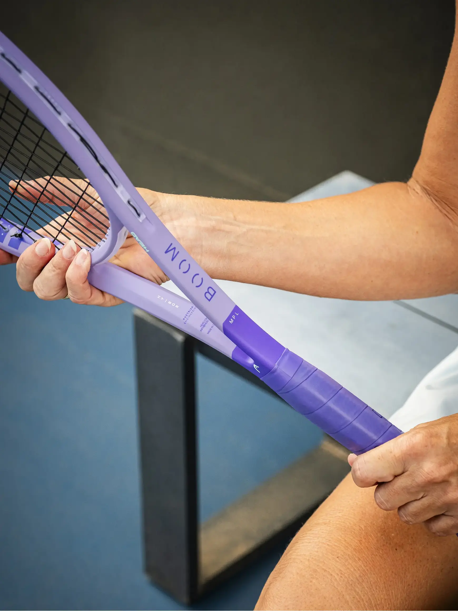Ein lila Look passt zur kraftvollen Ballberührung des BOOM ALTERNATE MP L TENNISSCHLÄGERS für fortgeschrittene Spieler, der leichter und kraftvoller ist als der MP. mehr lesen