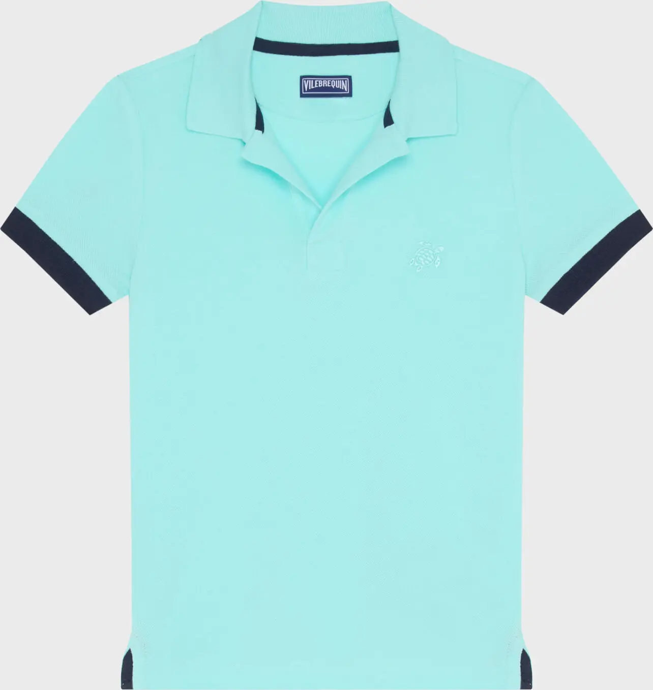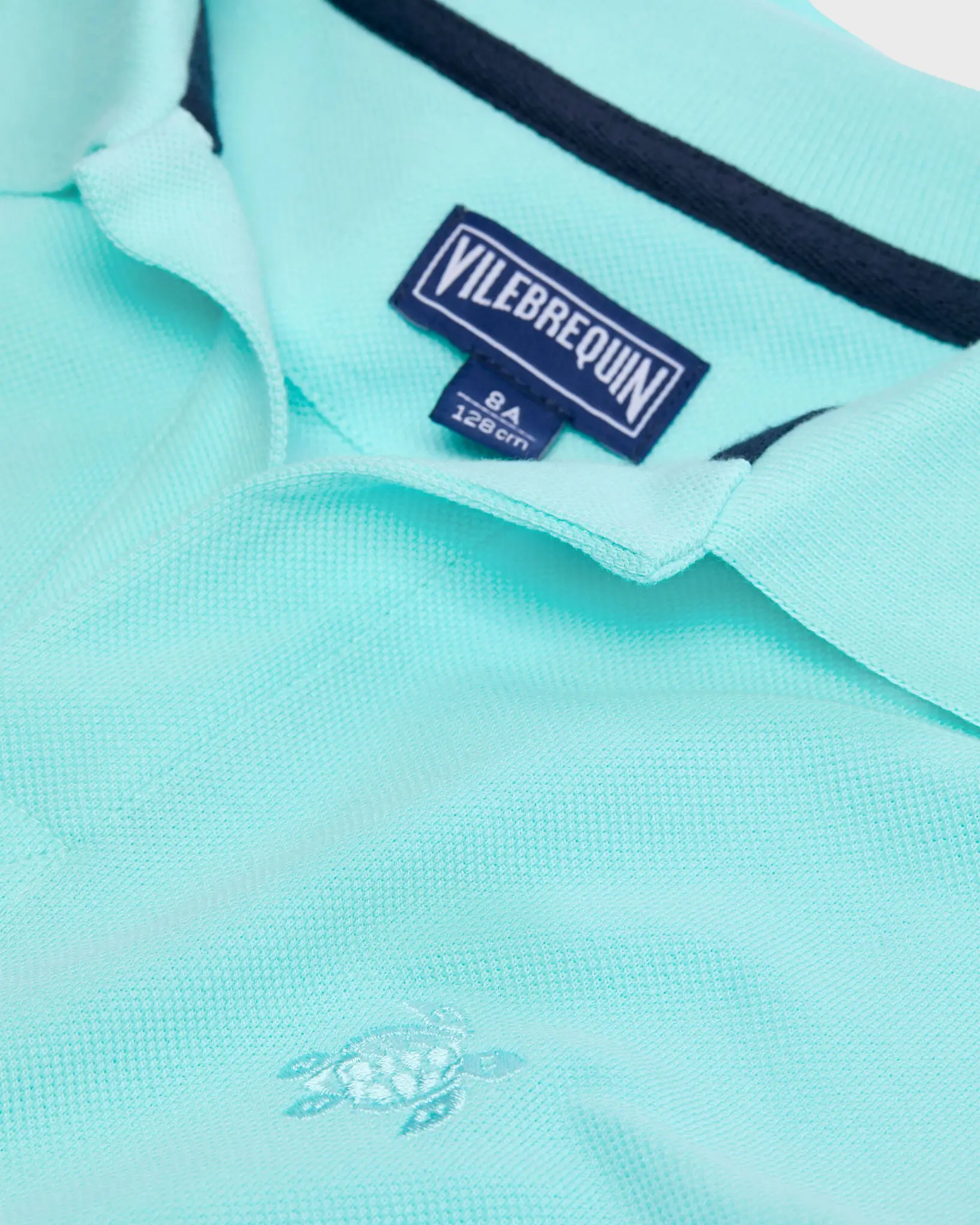 Farblich passende aufgestickte Schildkröte auf der Brust und Vilebrequin-Logoprint unter dem Kragen