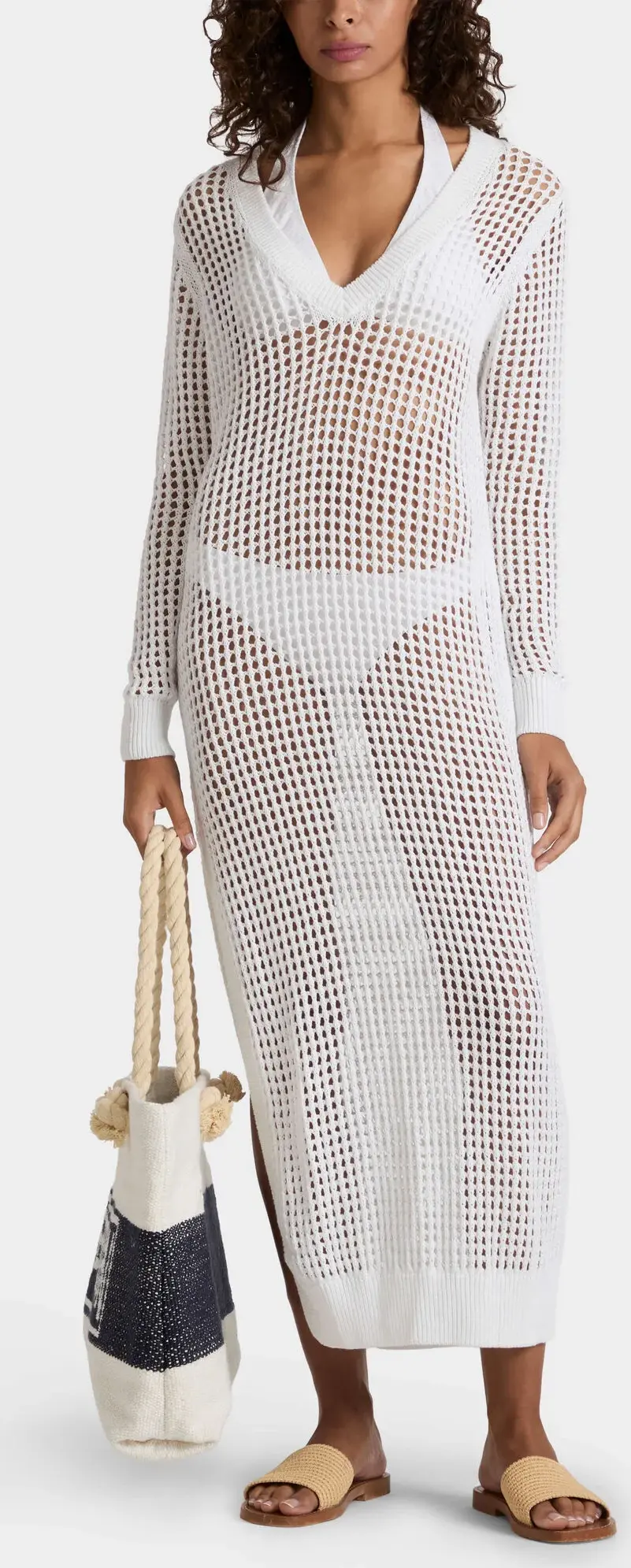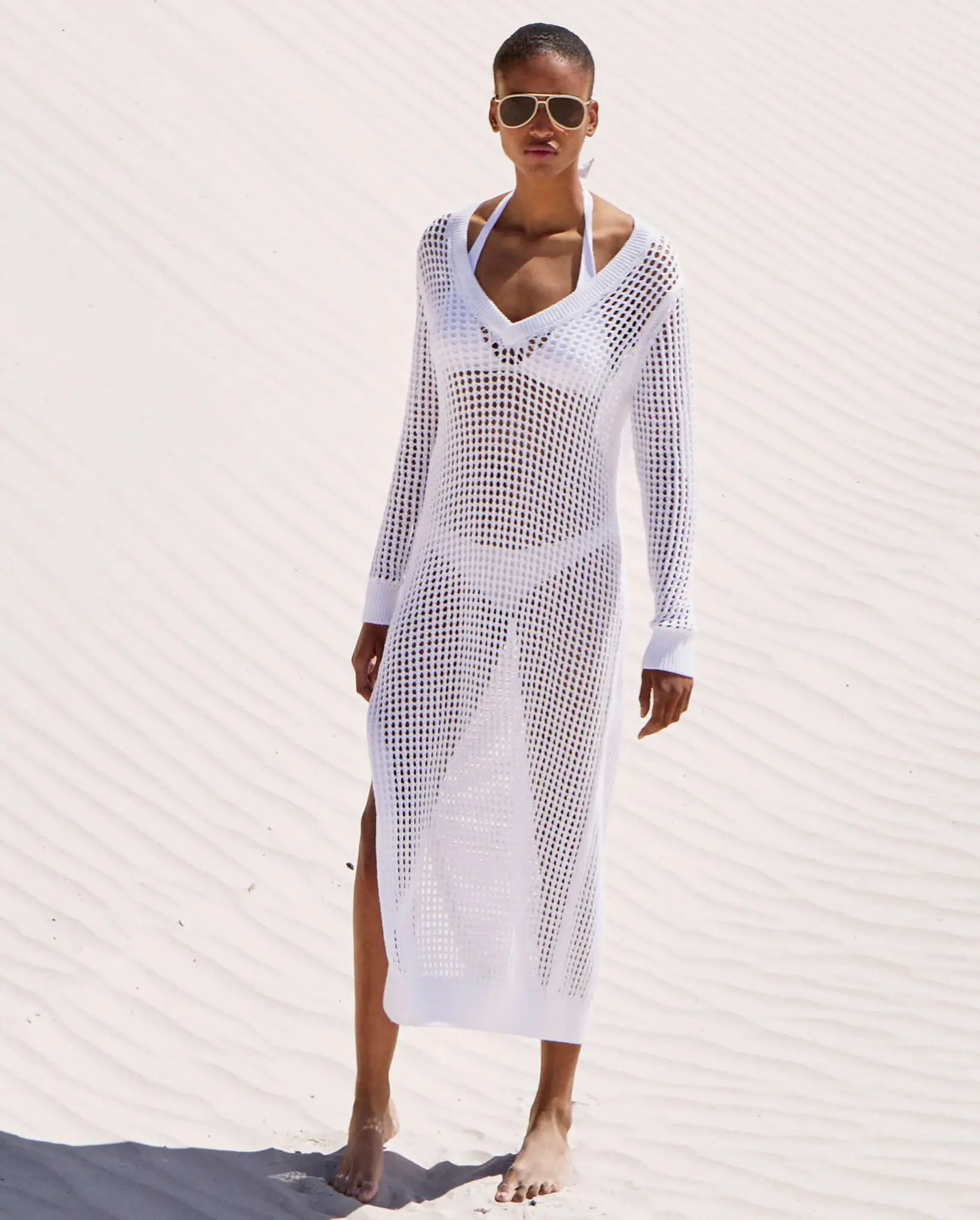 Das LYSIA Häkelkleid ist ein zart geformtes Netz aus Sonne und Schatten. Lange Ärmel und langer Rumpf, aber dennoch offen und atmungsaktiv: Über einen Bikini getragen, bietet es luxuriösen Tragekomfort. Verziert ist es mit einer Plakette in Schildpattoptik.