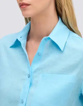 Regular fit women's short-sleeved linen shirt with front pocket. A basic, cool and lightweight garment, ideal for pairing with skirts or trousers for minimalist yet stylish outfits. Wear it open, perhaps over your bikini at the beach.