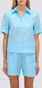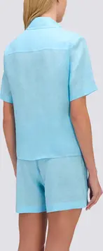 Regular fit women's short-sleeved linen shirt with front pocket. A basic, cool and lightweight garment, ideal for pairing with skirts or trousers for minimalist yet stylish outfits. Wear it open, p...