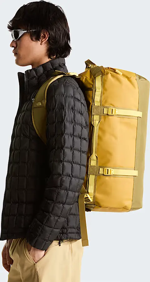 Geräumige Größe: Diese Tasche bietet viel Platz für Wesentliches und alltäglichen Krimskrams. Die Base Camp Duffel-Tasche ist zu Recht legendär! Denn ihr vertrauten schon unzählige Reisende und Abenteurer zwischen Großstadtdschungel und Everest. Sie besteht jetzt aus wasserabweisenden, recycelten Materialien, ist aber wie gewohnt unglaublich haltbar und unzerstörbar. Aber sie ist nicht nur superrobust, sondern auch echt praktisch – dank der vielen durchdachten Details. Abenteurer wissen, was sie an ihr haben! Nimm sie am Flughafen als Tragetasche – den zwei Handgriffen sei Dank – und trage sie unterwegs als Rucksack – den zwei abnehmbaren und verstellbaren Schultergurten sei Dank. Die große Öffnung oben zeigt sofort, was alles drin ist. Apropos: Es passen ganze 50 Liter rein. Falls du doch etwas zu viel eingepackt hast, kannst du mit vier Kompressionsriemen Druck machen.