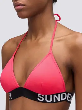 Adjustable triangle top combining femininity and sporty appeal, for a dynamic beachwear look highlighted by the elastic band with contrasting logo. Perfect at all times also thanks to the VITA by C... mehr lesen