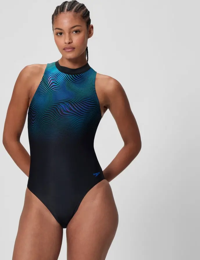 Unser Hydrasuit mit Print wurde für aktives Schwimmen entwickelt und ist ein Fitness-Favorit. Er ist aus Endurance Pro Material mit Vier-Wege-Stretch hergestellt und für dauerhaften Komfort und Haltbarkeit beständig gegen Chlor und Knötchenbildung. Ein Rückenreißverschlusszug ermöglicht ein einfaches Wechseln und verfügt über eine Reißverschlussgarage für eine scheuerfreie Passform. Mit klassischer Abdeckung, geschlossenem Rücken und einem bequemen Unterbrustgummi für leichten Halt. Hauptteil aus 57 % recyceltem Polyester, 43 % recyceltem Polyester PBT.
