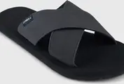 Nimm die Leichtigkeit des Wassers mit den komfortablen Koosh Slides in den Alltag mit. Das weiche gebürstete Fußbett ist mit einem Laserprint versehen und die breiten gekreuzten Riemen sind ebenfalls gebürstet – für maximalen Tragekomfort bei jedem Schritt, ohne zu scheuern.