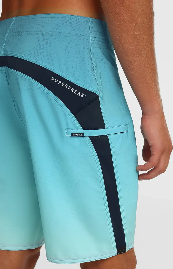 Die Superfreak Mysto 20" Boardshorts bietet Top-Performance und Komfort für begeisterte Surfer. Das Hyperfreak Stretch-Material und die Superfreak-Seiteneinsätze sorgen für optimale Bewegungsfreiheit in den Wellen, während das Hyperdry-Finish von O'Neill die Hose noch schneller trocknen lässt, sobald du wieder an Land bist. Die Boardshorts hat einen festen Bund mit flexibler Kordel für eine perfekte Passform, eine Tasche mit elastischer Schlüsselschlaufe und einen reflektierenden Print auf der Rückseite. Hergestellt aus 50 % recyceltem REPREVE®-Polyester.
