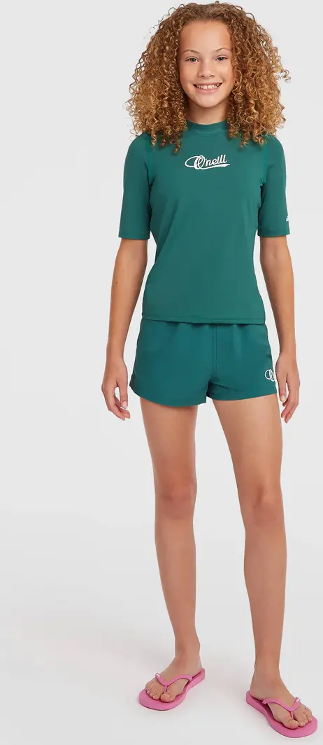 Mit dem O'Neill Shortsleeve-Schwimmshirt kann deine kleine Surferin sich im Meer austoben und ist gleichzeitig geschützt. In diesem kurzärmeligen Shirt mit hohem Kragen und Flatlock-Details kann sie dank UV-Schutzfaktor 50+ die Wellen an sonnigen Tagen in vollen Zügen genießen. Mit Siebdruck auf der Brust.