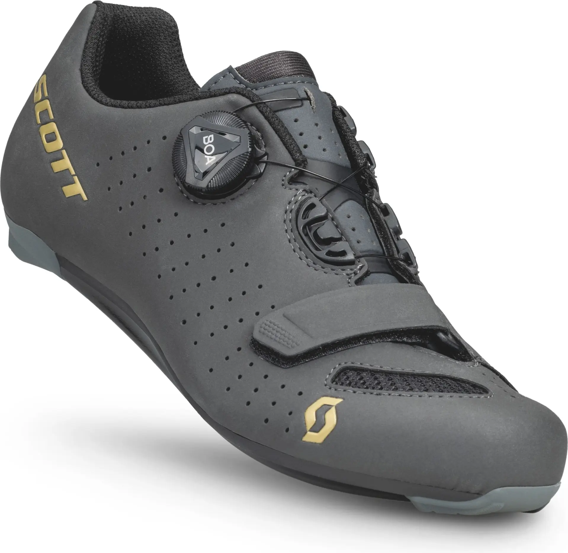 Der SCOTT Road Comp BOA® für Damen punktet mit tollem Komfort und vielen wichtigen Passform-Eigenschaften – der ideale Schuh für Freizeit-Bikerinnen und Hobby-Rennfahrerinnen. Das anpassungsfähige, anliegende Obermaterial mit Profilierung ist mit einem BOA® L6 Fit System ausgestattet. In Kombination mit dem Klettverschluss für anatomische Passform im unteren Bereich lässt sich der Schuh perfekt an jede Fußform anpassen. Das ErgoLogic-Fußbett bietet eine einzigartige Passform und die Laufsohle mit Steifigkeits-Index 6 überträgt die Kraft auf die Pedale – die perfekte Balance aus Steifigkeit und frauenspezifischem Tragekomfort.