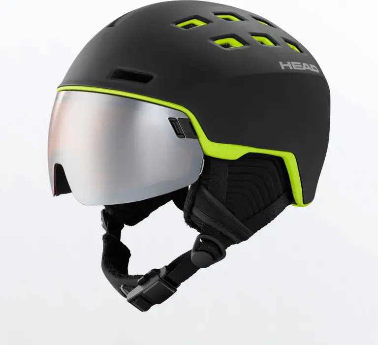 Ein Helm mit perfekt integriertem Visier, der die Vorteile des Tragens einer Schneebrille mit denen eines Visierhelmes verbindet: komfortable Passform nicht nur für Brillenträger, bester Durchblick sowie perfekter Schutz vor Wind und Wasser. Das Visier, welches wie bei einer Schneebrille aus Doppelglas besteht, kann in Sekundenschnelle mittels 2 Klicks gewechselt werden, um sich an wechselnde Wetterverhältnisse anzupassen. Der perfekte Fit wird über das innovative Sphere Fit System garantiert und der magnetische FidLock Verschluss sorgt für einen festen Sitz. Das alles, kombiniert in sportlichem, modernen Design, ist unser RADAR Helm.