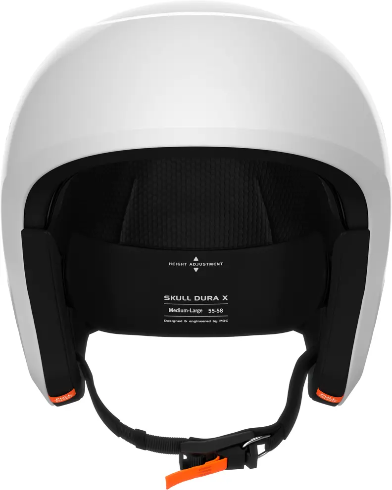 Produktbeschreibung_ Der Skull Dura X Mips ist vollständig für den Rennsport zertifiziert und verfügt über die innovative Race-Lock-Drehradverstellung, die für einen vollkommen sicheren Sitz bei sehr hohen Geschwindigkeiten sorgt. Der Helm ist für eine gleichmäßige Passform über den gesamten Kopf geformt und bietet den Komfort, der es dem Fahrer ermöglicht, sich ganz auf das Rennen zu konzentrieren, ohne durch die Ausrüstung abgelenkt zu werden. Eine EPP-Auskleidung mit flexiblem Aufprallschutz schützt den Kopf zusätzlich. Mips sorgt für einen erhöhten Rotationsaufprallschutz. Das gemäß FIS RH 2013 zertifizierte Modell verfügt über Ohrpolster, die nach einem Sturz leicht entfernt werden können, wodurch es einfacher ist, den Helm sicher abzunehmen. Ohrkammern unterstützen eine verbesserte Balance, und der Helm ist voll kompatibel mit dem Maxilla Breakaway Kinnschutz.