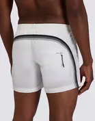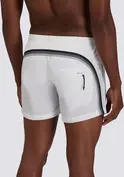 Plain-coloured short men's swimming costume with bright colours and a heat-sealed zip detail that closes the back pocket. Lightweight, durable, dries very quickly and is made of polyester memory, a technical fabric that retains its shape over time. It has our classic three-needle stitching for durability and our iconic rainbow on the back.