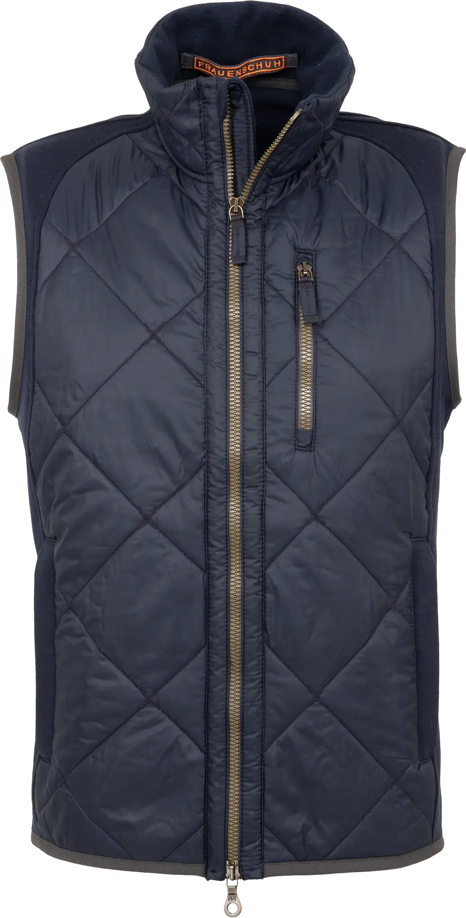 Chic, bequem und wärmespendend – die ärmellose Quiltweste trägt man als zweite Schicht über Pullovern. Nimmt man sie eine Nummer größer, passt sie in der Übergangzeit auch gut über dünnere Jacken.76% Polyester, 18% Schurwolle, 6% ElasthanWir empfehlen das Produkt immer entsprechend der Waschanleitung des Kleidungsstückes zu waschen. Vor dem Waschen bitte alle Reißverschlüsse schließen, so werden die Zähne der Reißverschlüsse geschont. Das Material (Wool Powerstretch) keiner chemischen Reinigung aussetzen, nicht bleichen und nicht in den Trockner geben. Wählen Sie ein möglichst schonendes Waschprogramm bei möglichst niedriger Temperatur (30°), verwenden Sie wenig Waschmittel und fügen Sie keinen Weichspüler hinzu. Nach dem Waschen eignet sich das Produkt im feuchten Zustand auf die Wäscheleine aufzulegen oder zu hängen und an einem gut belüfteten Ort trocknen zu lassen. Nach dem Trocknen können Sie das Produkt bei niedriger Temperatur aufdämpfen.