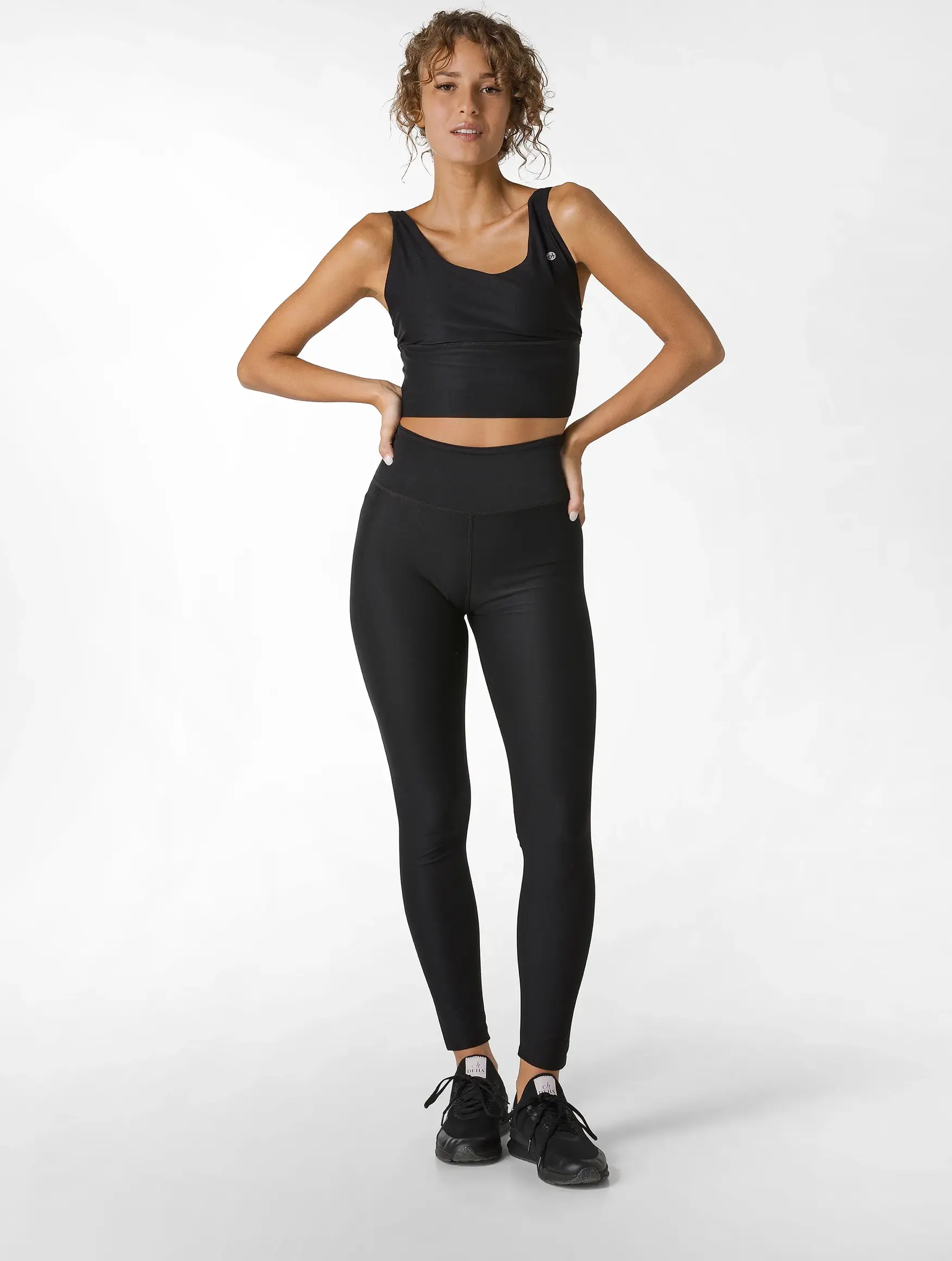 Die figurumschmeichelnde High Waist haelt die Leggings in der richtigen Position.